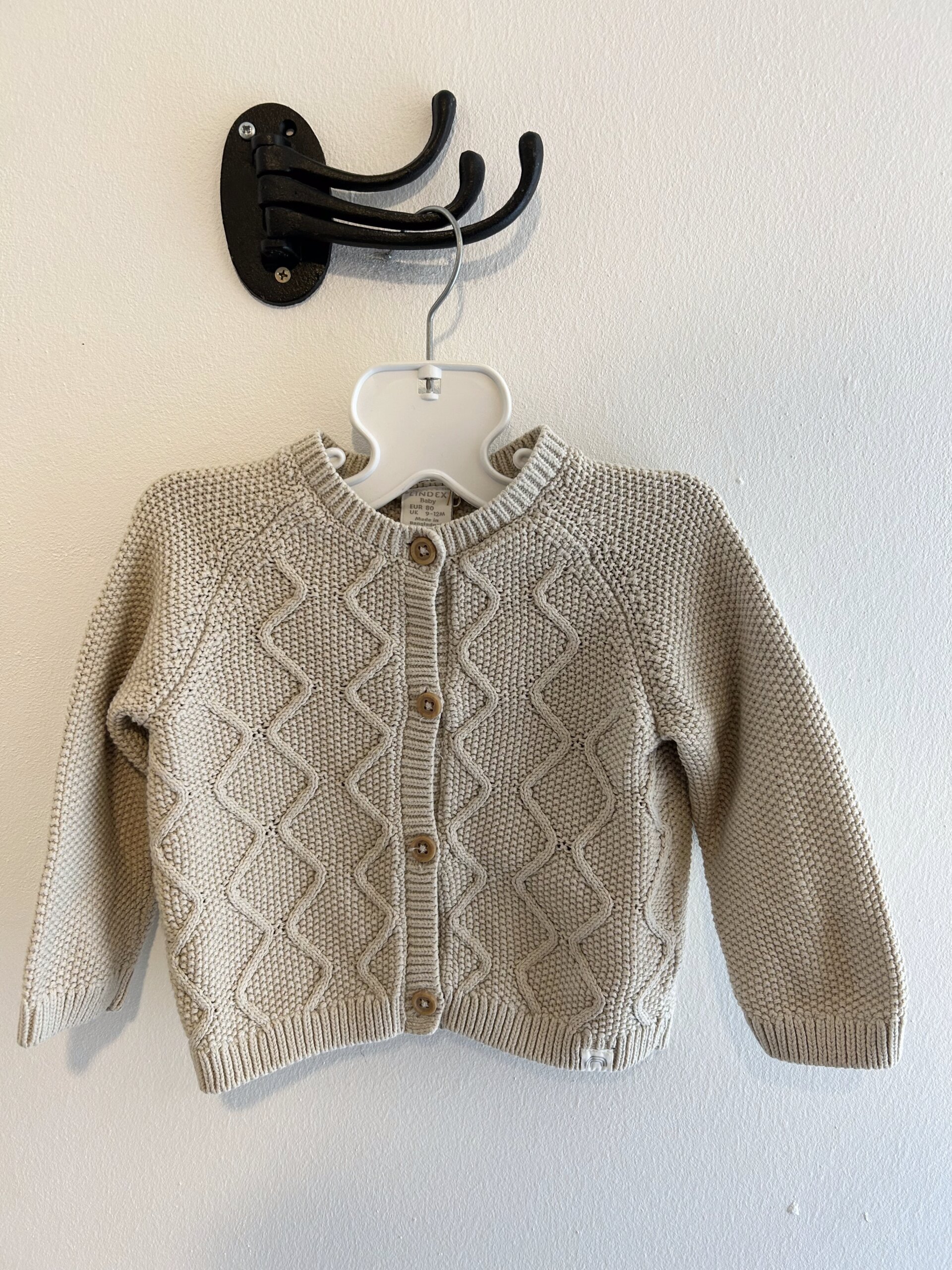 Beige mönstrad stickad kofta i stl 80. Plagget kommer från Lindex.