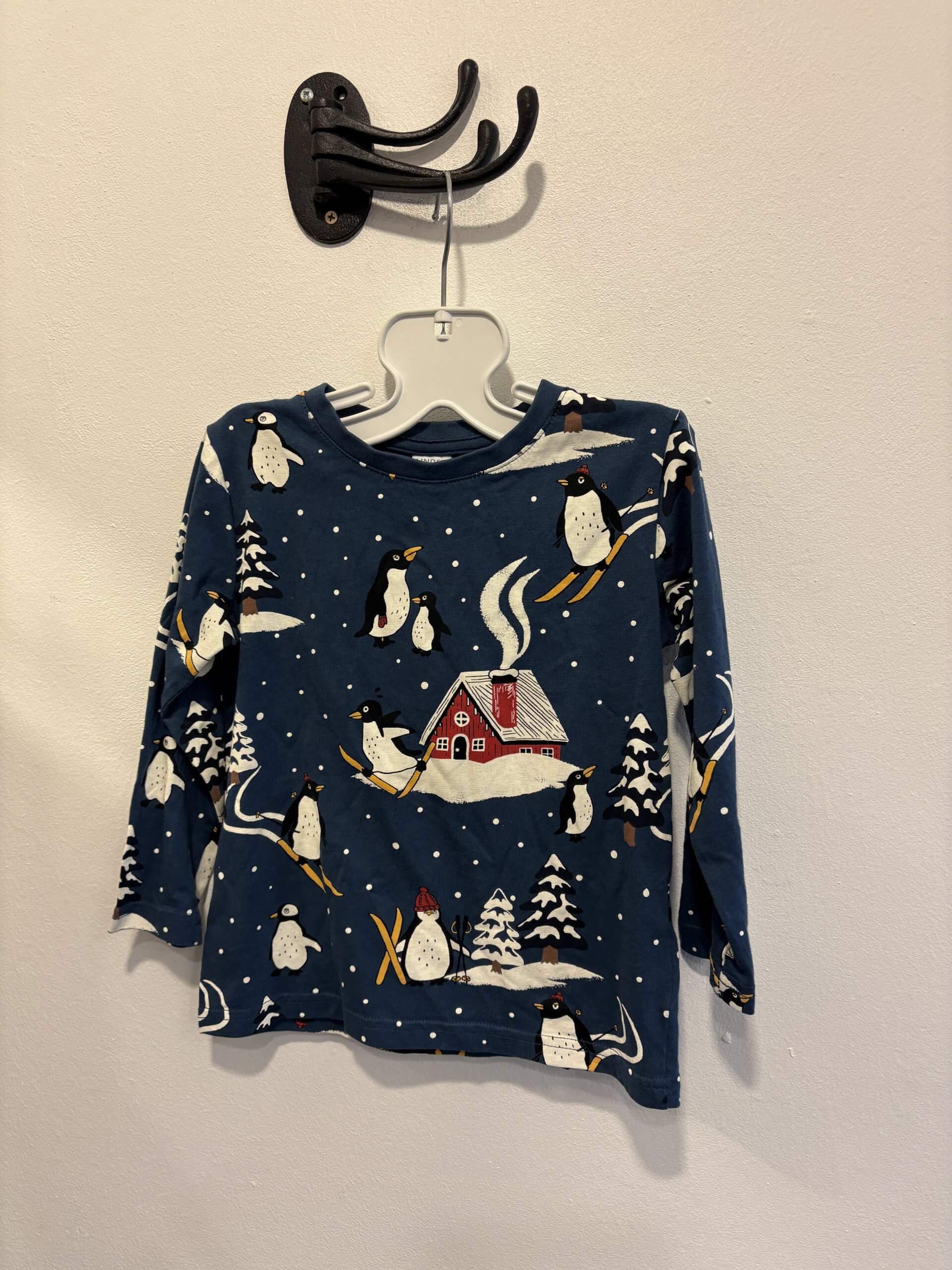 Blå tröja med vintermotiv i stl 104 från Lindex