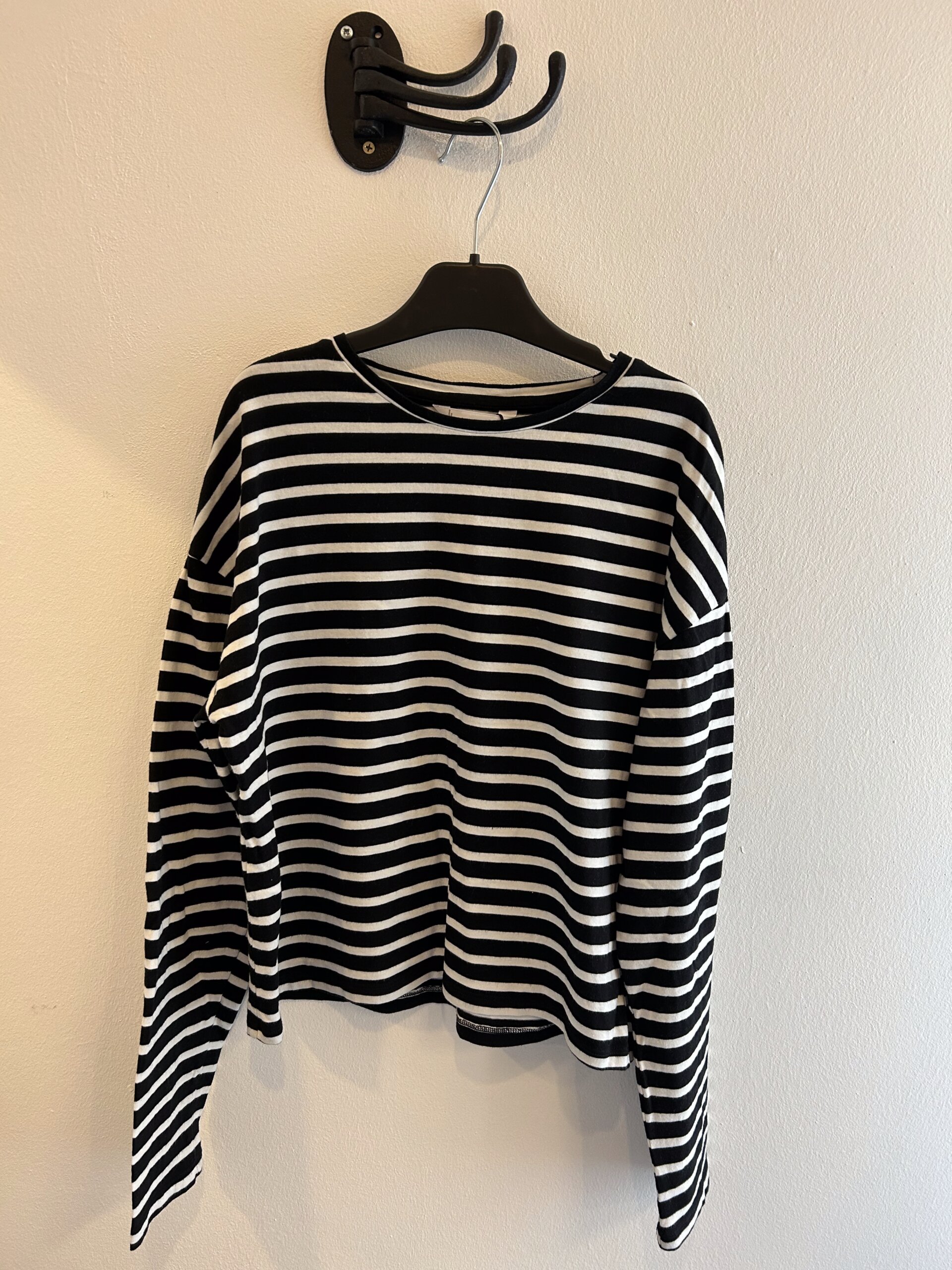 Begagnad långärmad blå/vit randig tröja i stl 164. Märket på plagget är MNG och är varsamt använd och i mjuk och behaglig kvalitet, rund hals.