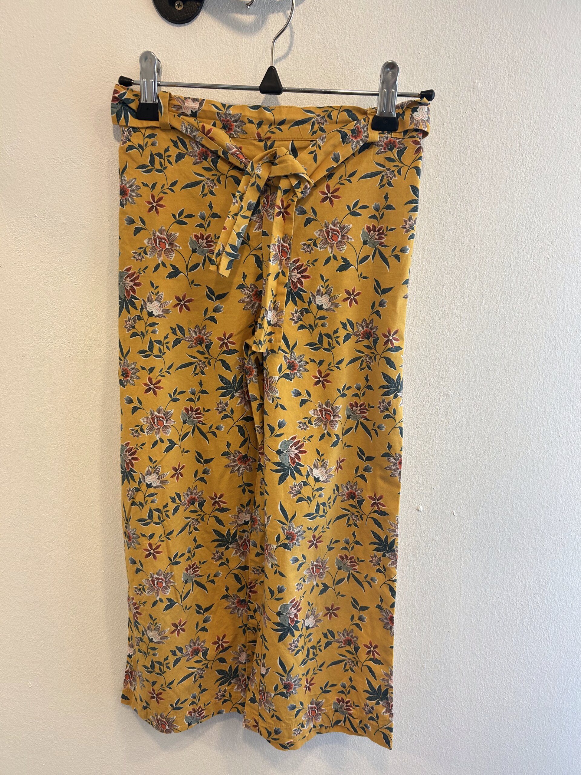 Gulblommiga byxor i stl 120 med knytband i midjan och resår baktill.