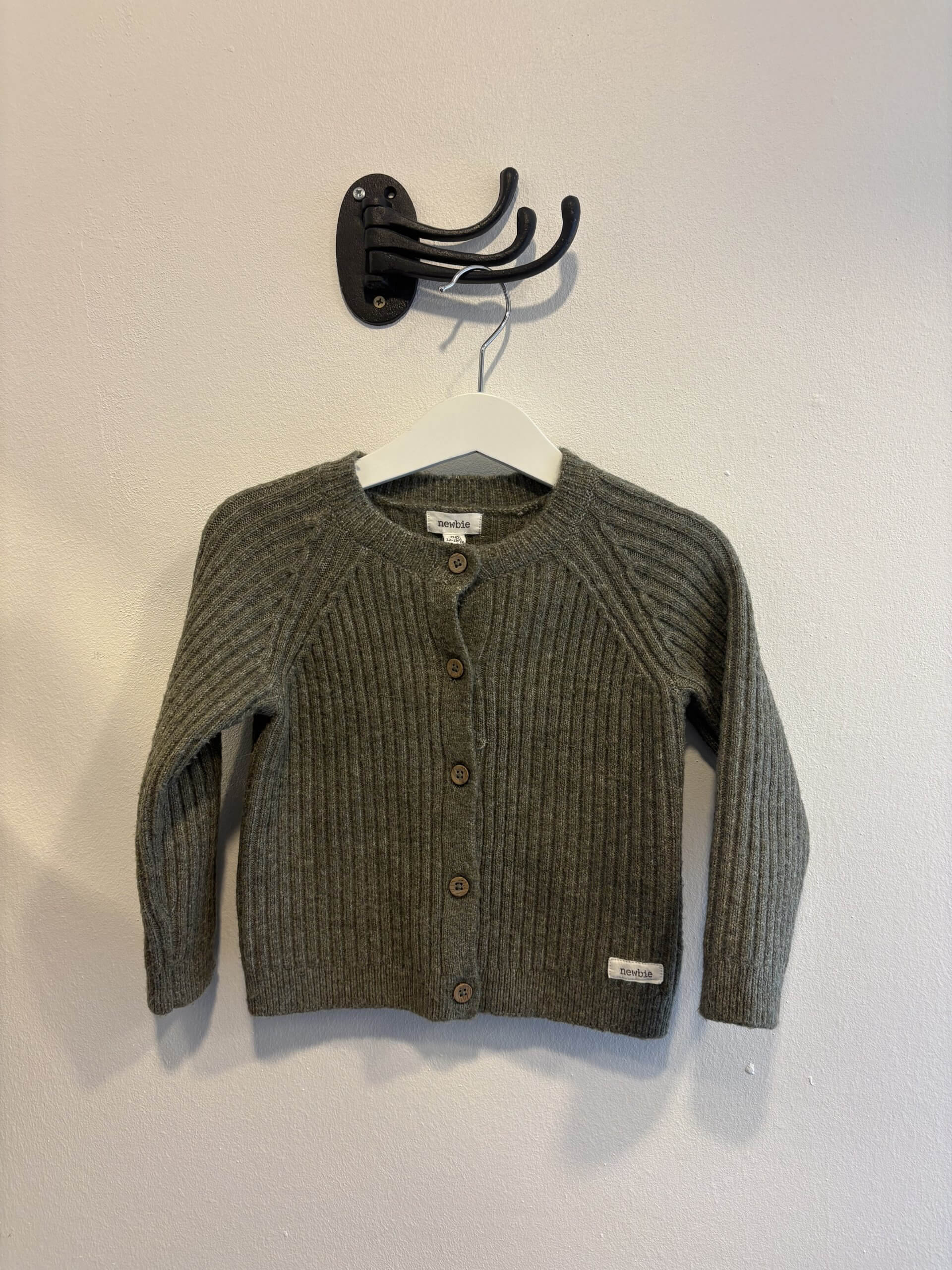 Begagnad grön stickad newbiekofta i stl 86 i fint skick.
