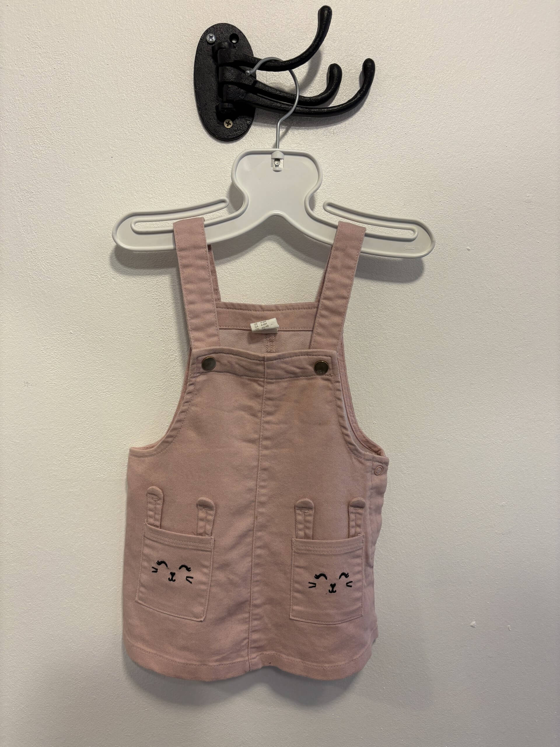 Fin rosa hängselklänning med djurmotiv på fickorna i stl 68 från H&M